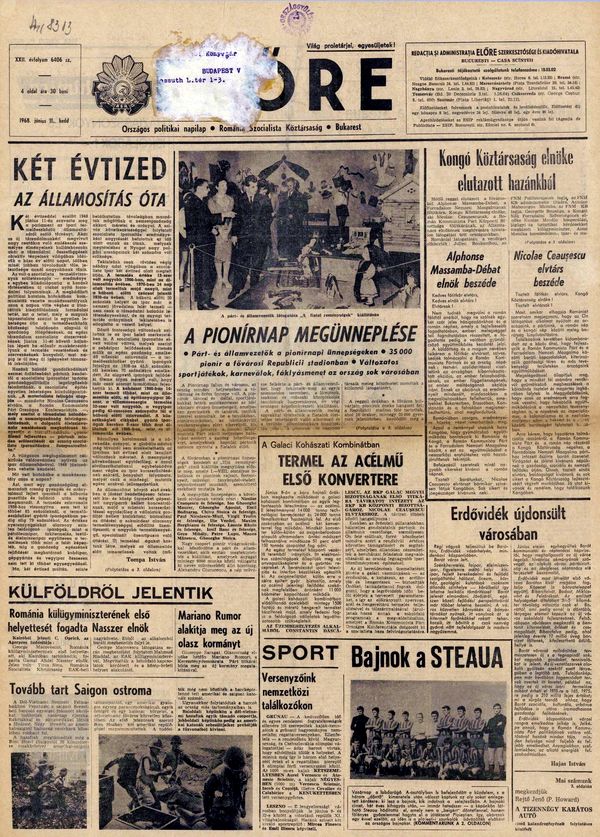 Kiadó: Előre Szerkesztősége és Kiadóhivatala