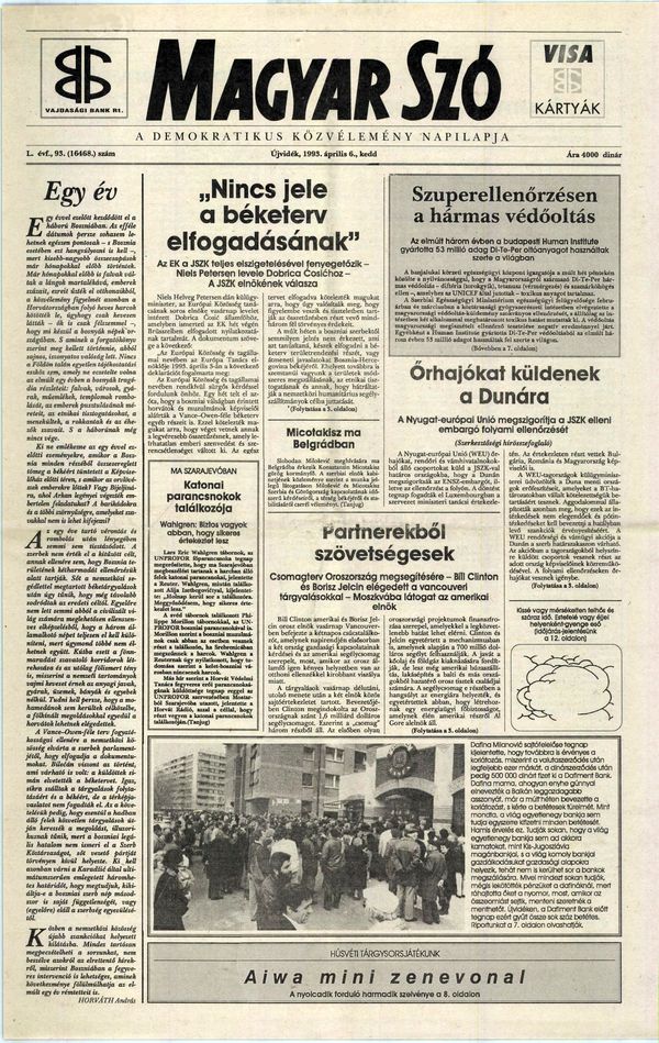 Megjelenés: Magyar Szó 1993/93. – 1993/146.