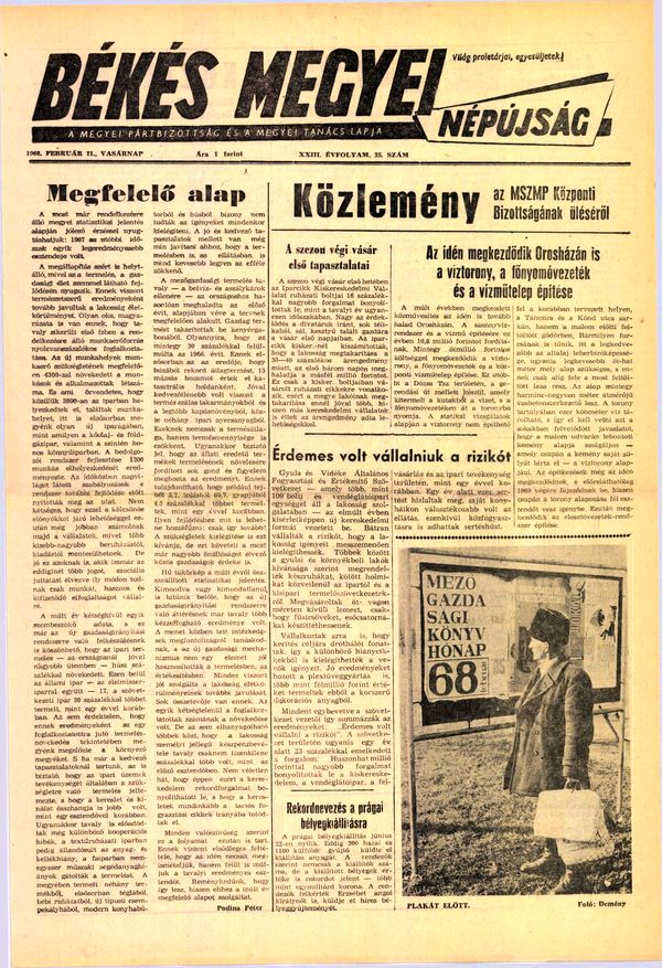 Megjelenés: Békés Megyei Népújság 1968/35. – 1968/105.