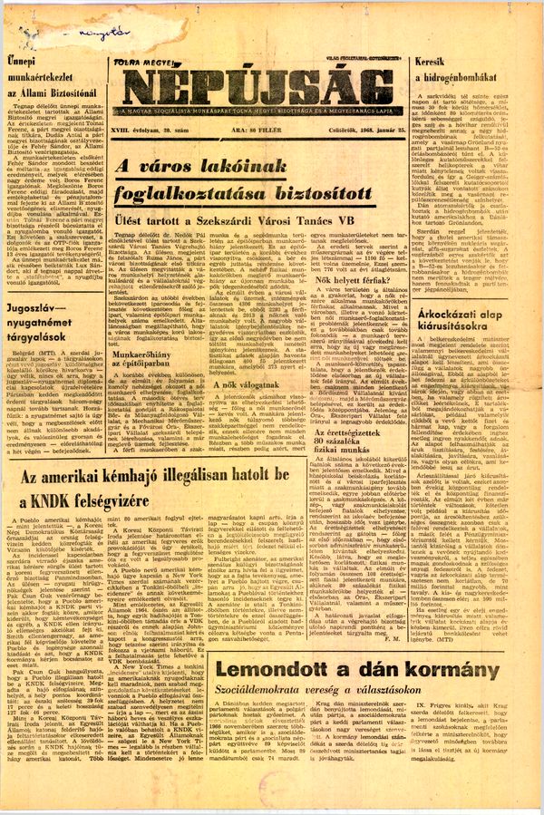 Megjelenés: Tolna Megyei Népújság 1968/20. – 1968/110.
