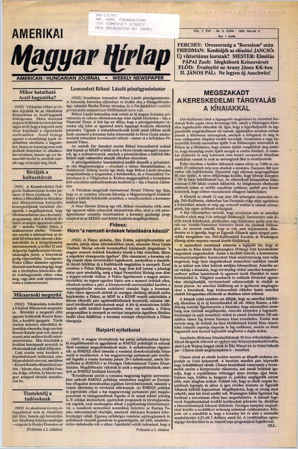 Megjelenés: Amerikai Magyar Hírlap 1995/4. – 1995/40.