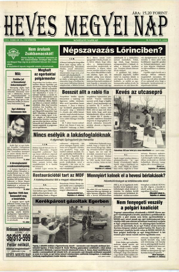 Megjelenés: Heves Megyei Nap 1995/40. – 1995/152.